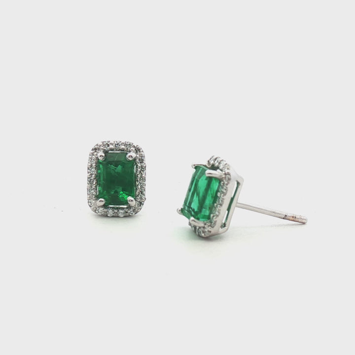 Emerald Rectangular 6x4mm Halo Earrings
